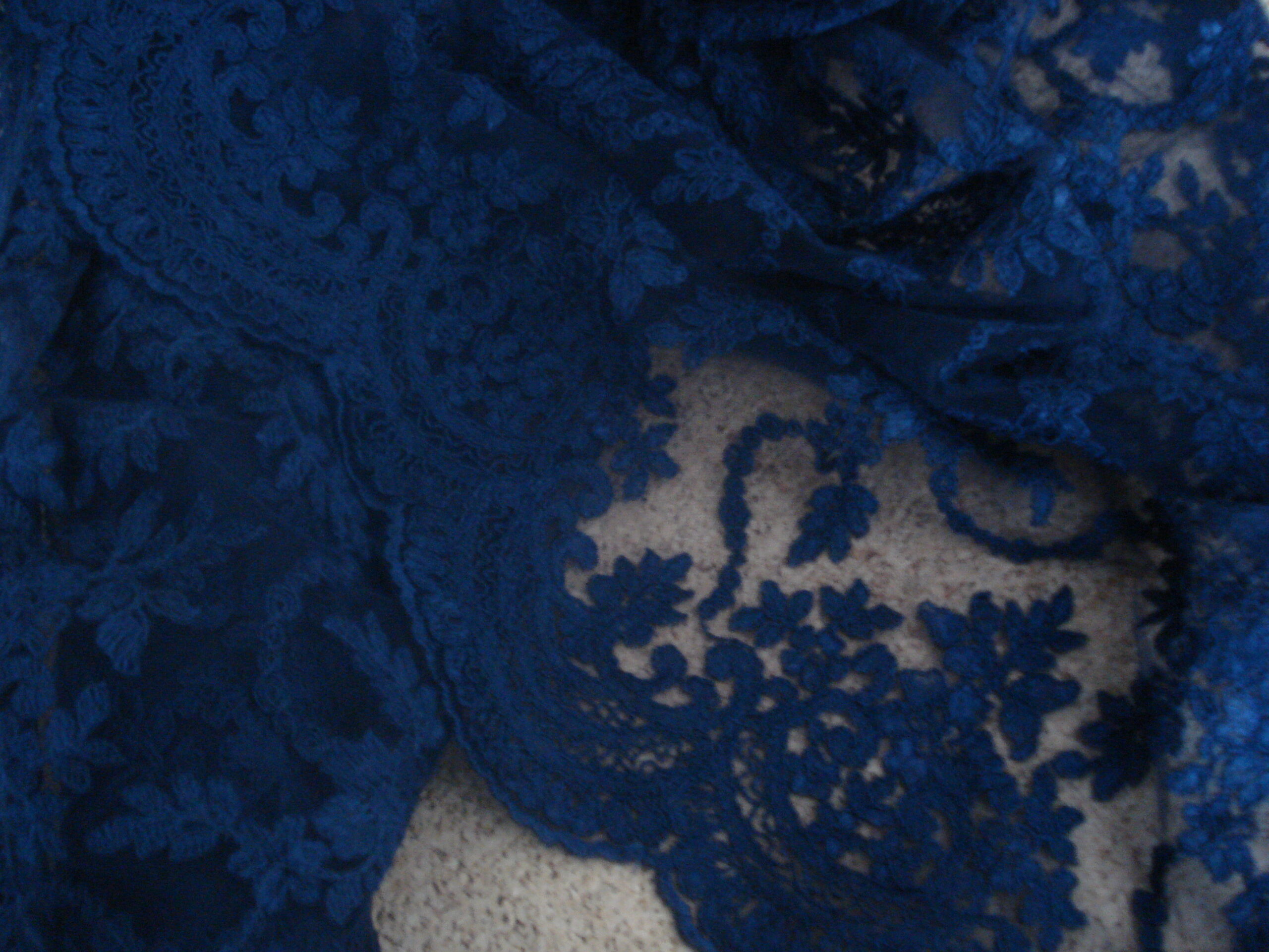 Tejido de encaje color marino, ancho 1.30 mts. Lavar a mano. Los colores pueden sufrir ligeras variaciones con respecto a la imagen.
