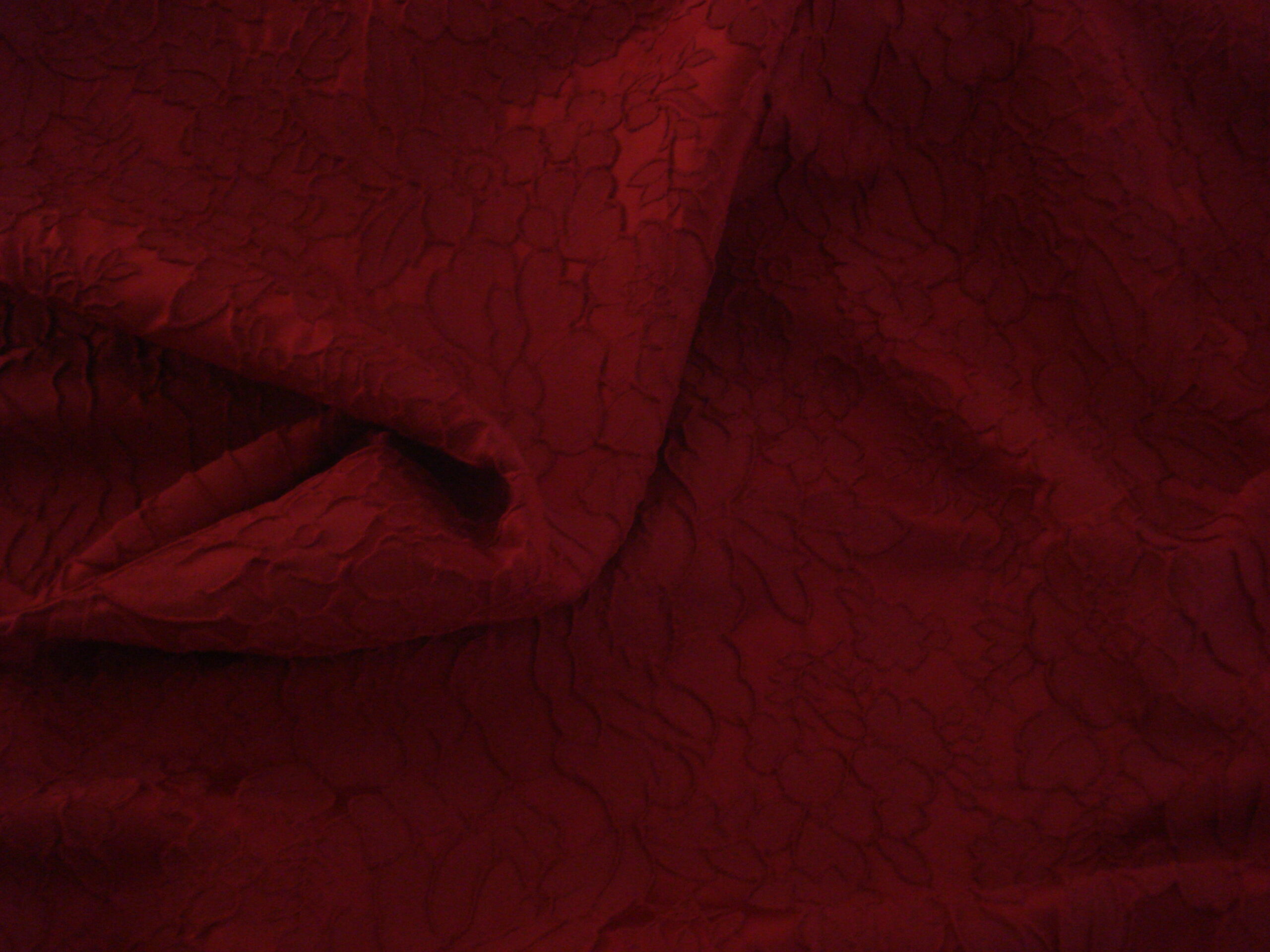 Tejido de fiesta 100% poliéster color rojo brocado flores, satinado, ancho 1,34mts. Lavar máximo a 30º. Los colores pueden variar ligeramente con respecto a la imagen.