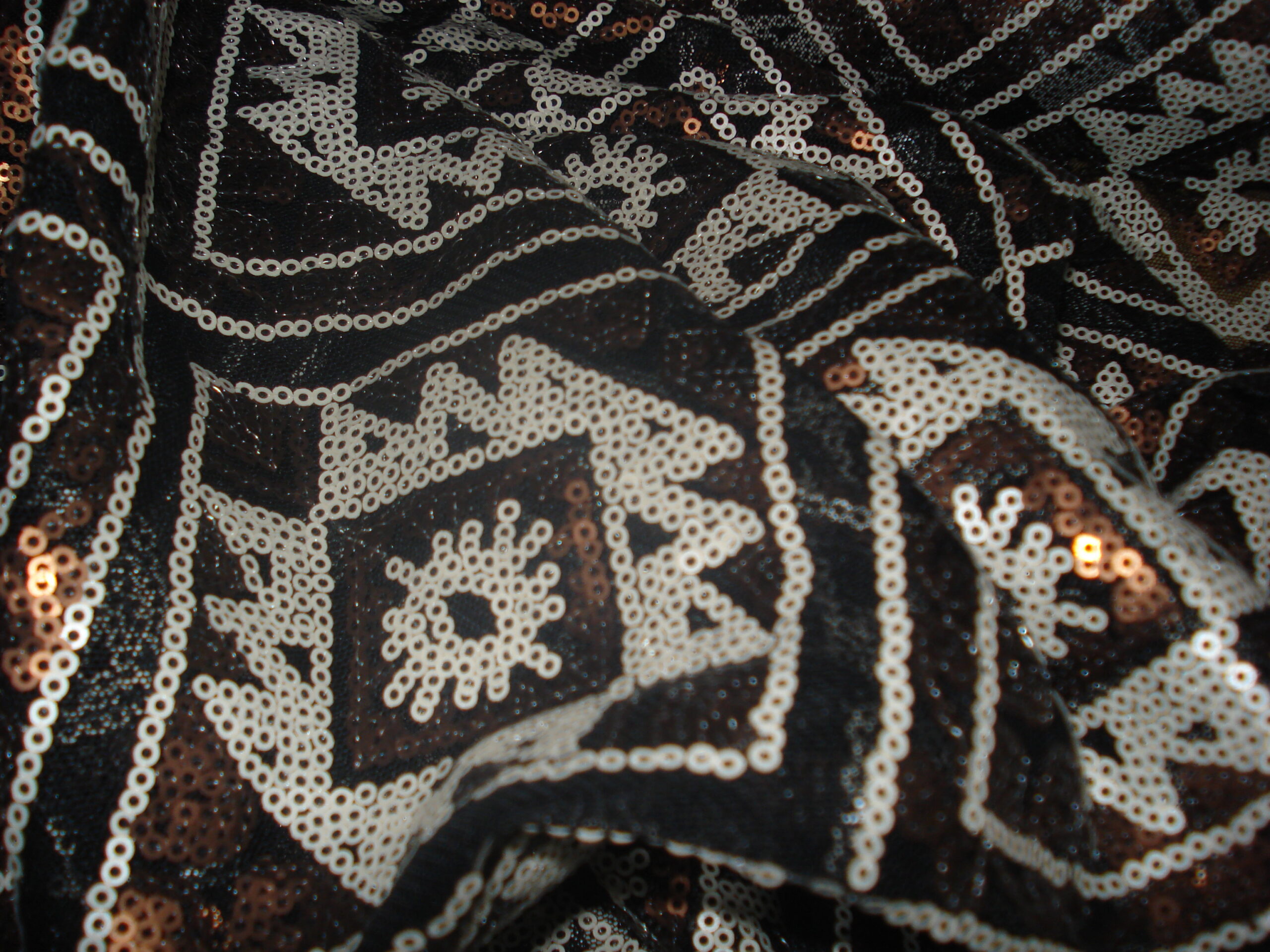 Lentejuela en blanco/bronce/negro, ancho 1,50mts.