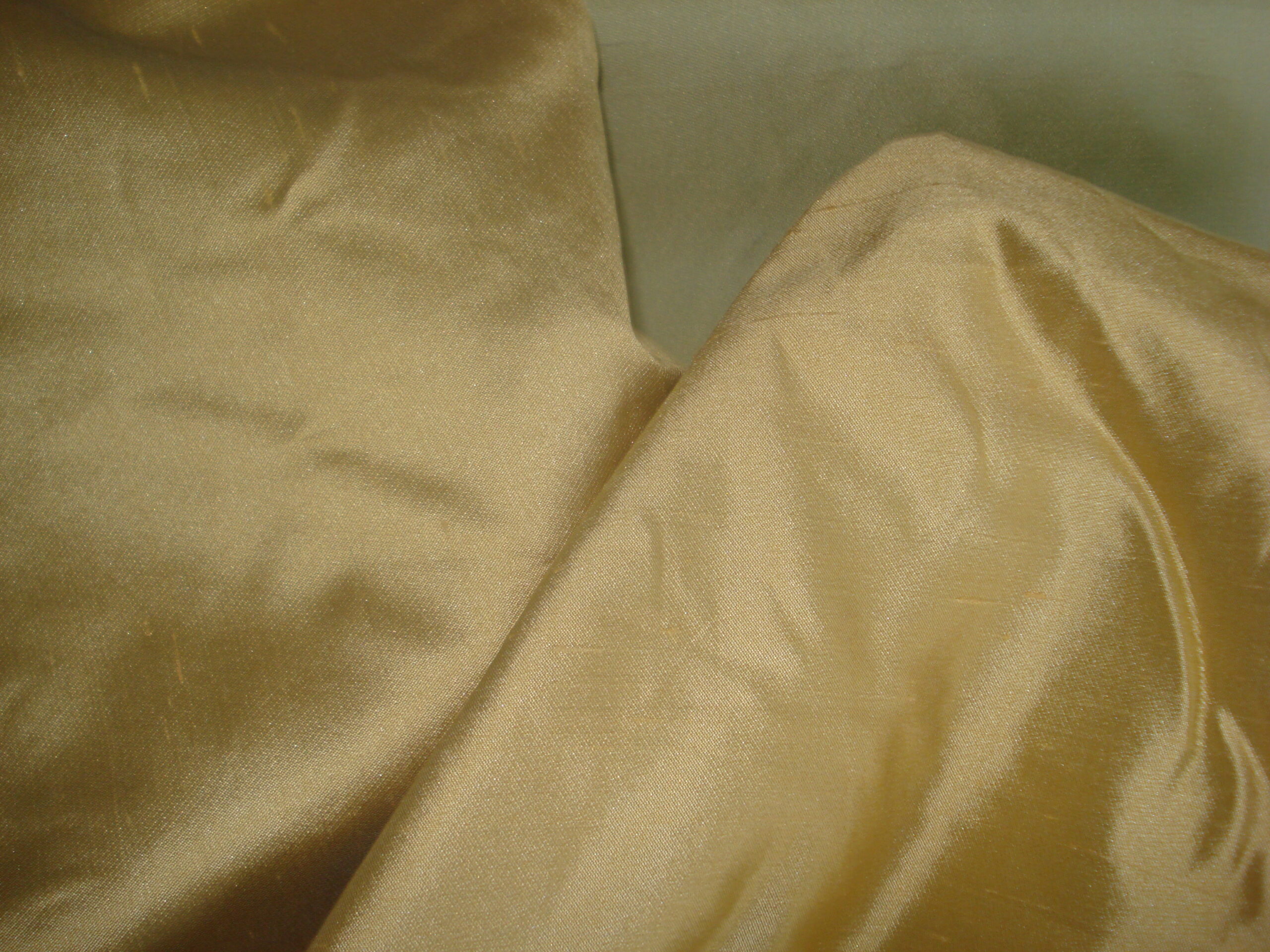 Tejido en seda salvaje color doble cara dorado-verde helecho, ancho 1.50mts. Lavar a mano, los colores pueden variar ligeramente con respecto a la imagen.