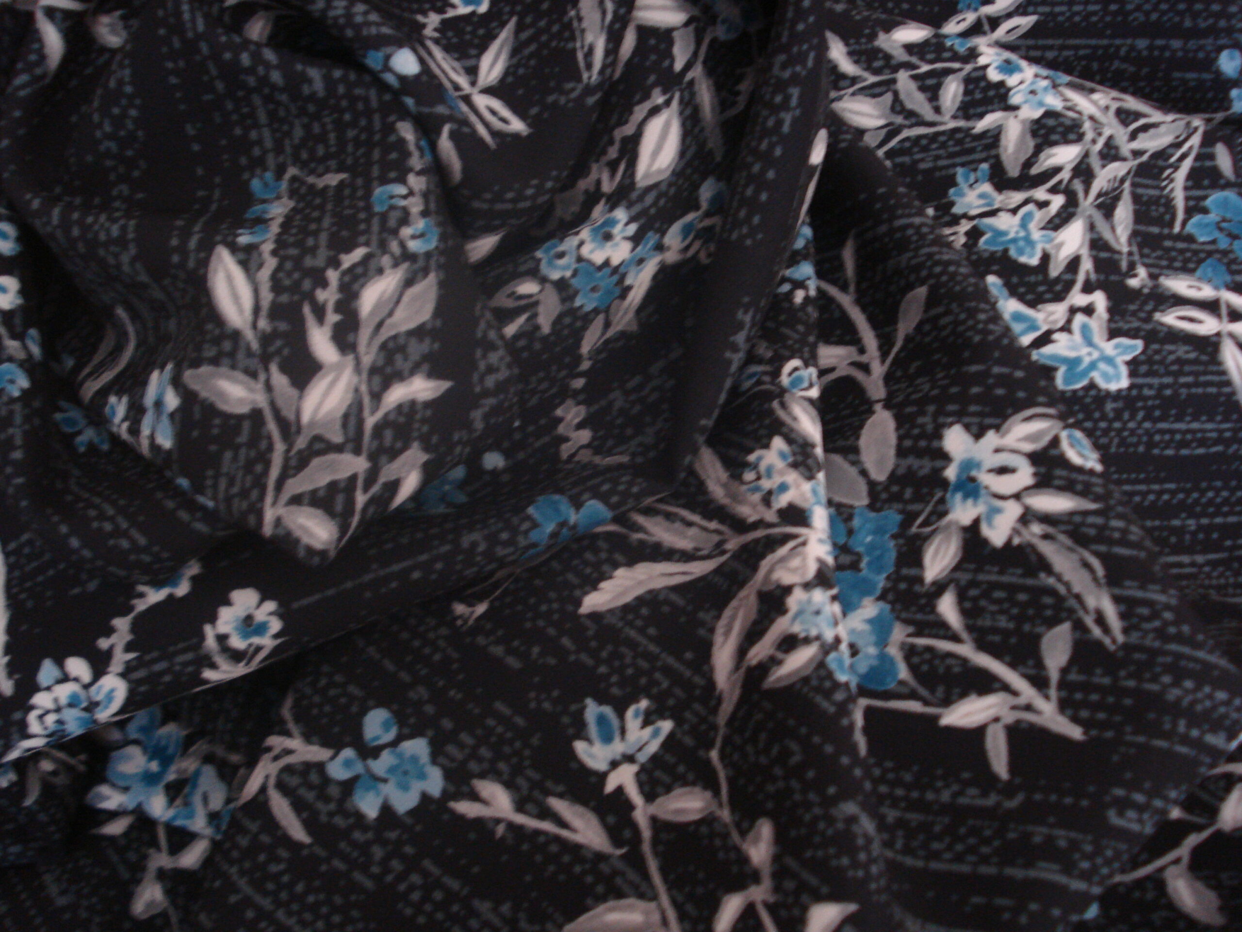 Punto de neopreno fondo marino con flores azul/gris. Ancho 1.50mts. Lavar máximo a 40º con prendas oscuras.