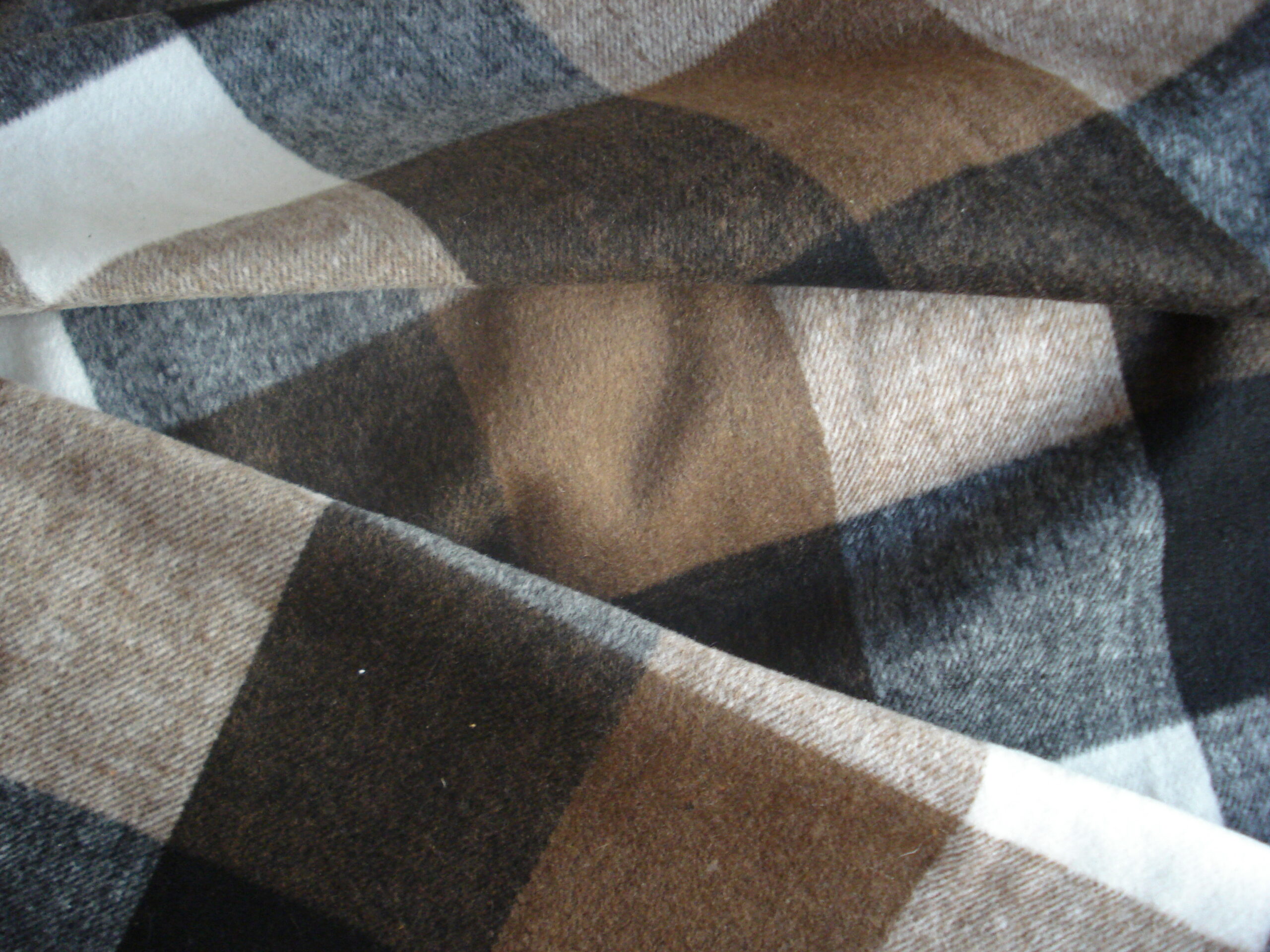 Tejido franela en algodón-poliéster con cuadros grandes, colores, blancos beige, marrones, grises, negros, ancho 1.52mts. Lavar máximo a 30º. Los colores pueden variar ligeramente con respecto a la imagen.