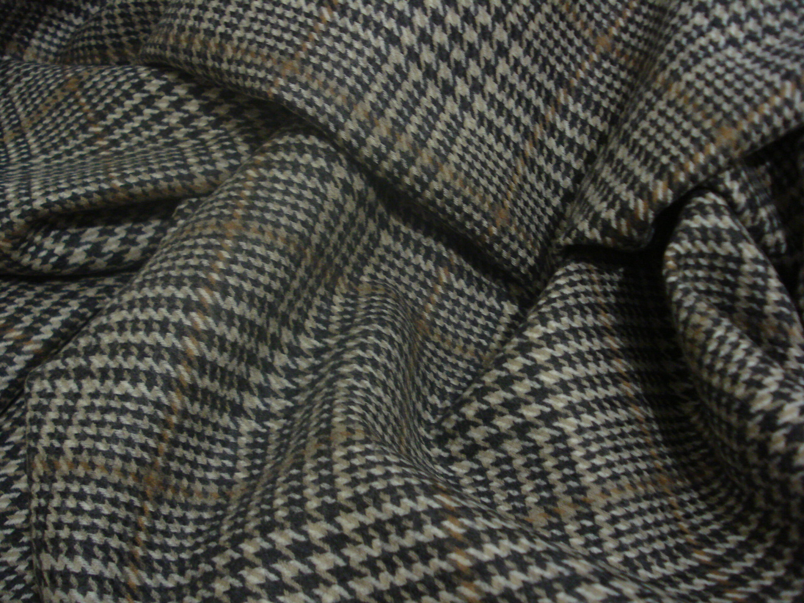 Tejido lana 100% c/príncipe de gales gris-marrón, ancho 1.54mts.