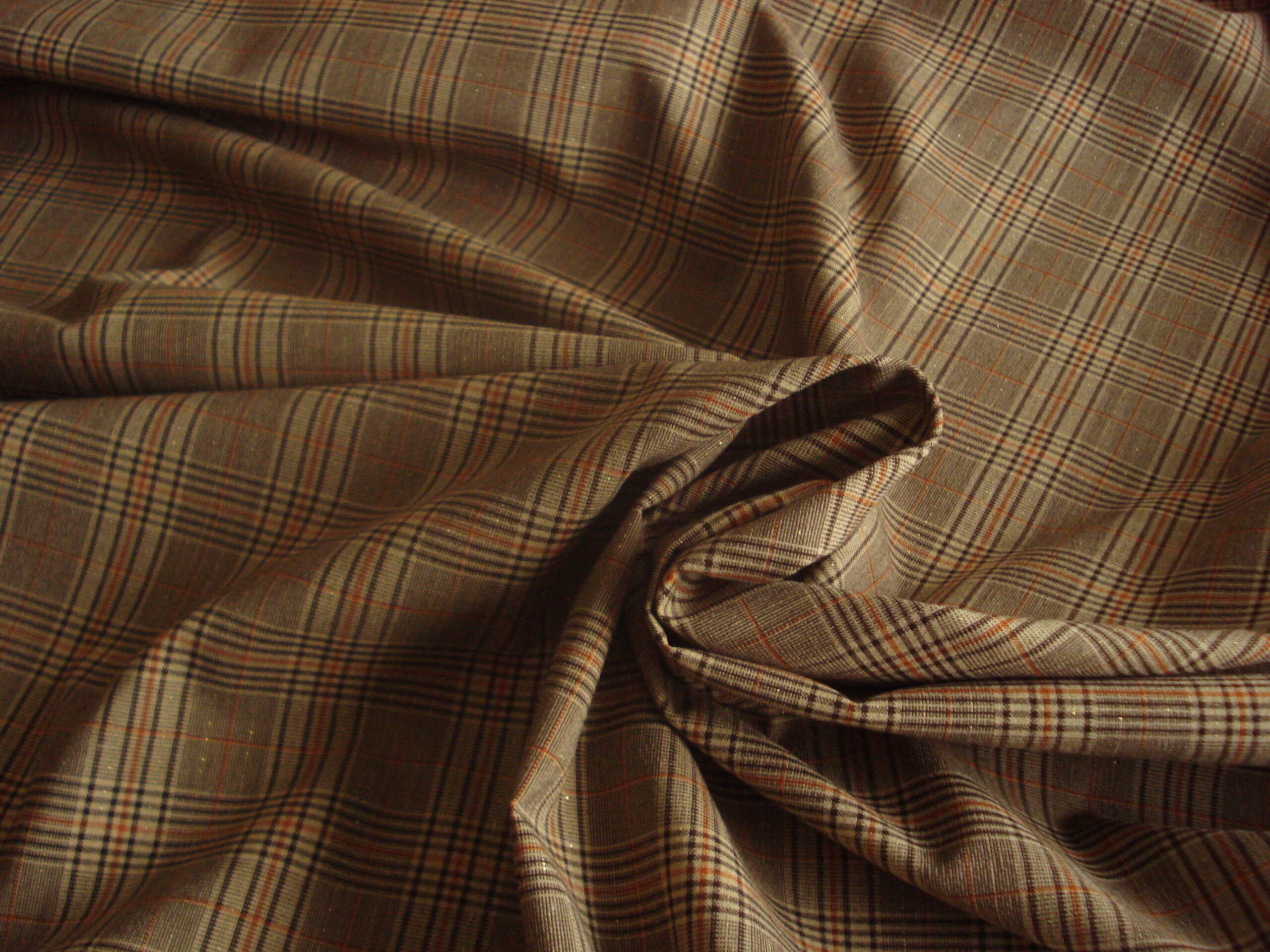 Tejido de viyela príncipe de gales en poliéster, colores marrones con hilo de lúrex, ancho 1.46mts.. lavar máximo a 30º, los colores pueden variar ligeramente con respecto a la imagen.