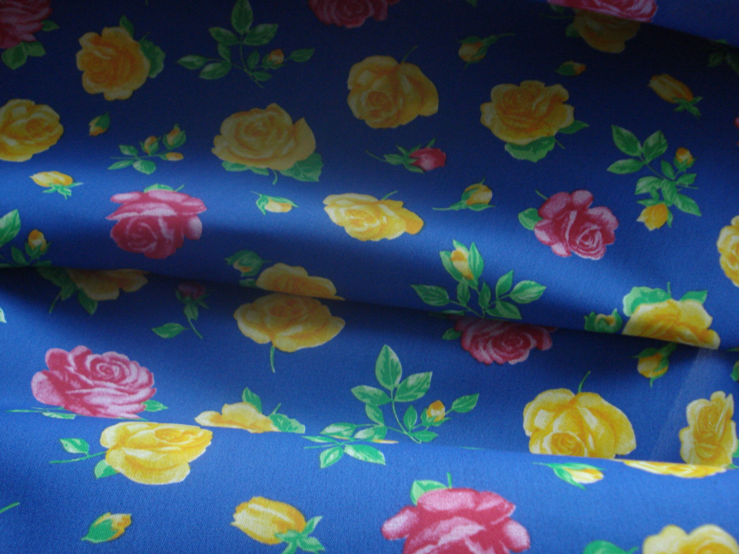 Tejido popelín f/azulón, estampado flores colores, ancho 1,60mts.