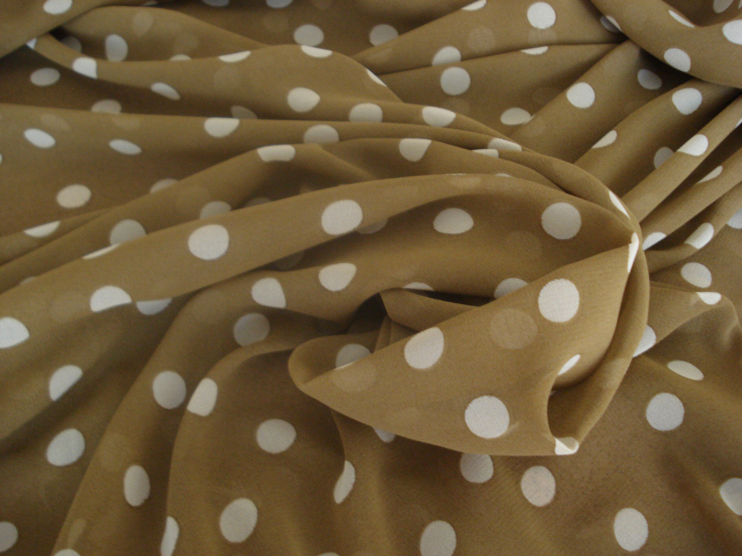 Tejido de gasa fondo verde oliva con lunares color verde lima, ancho 1.50mts. Lavar a mano, los colores pueden variar ligeramente con respecto a la imagen.